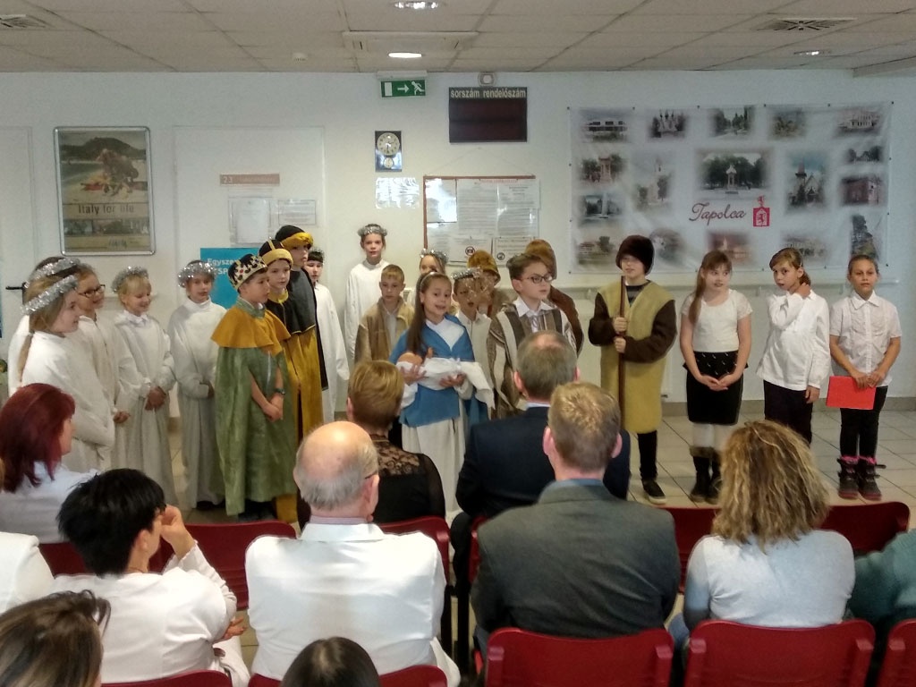 A programot a tapolcai Nagyboldogasszony Római Katolikus Általános Iskola 3. osztályos tanulói nyitották meg betlehemes műsorukkal.