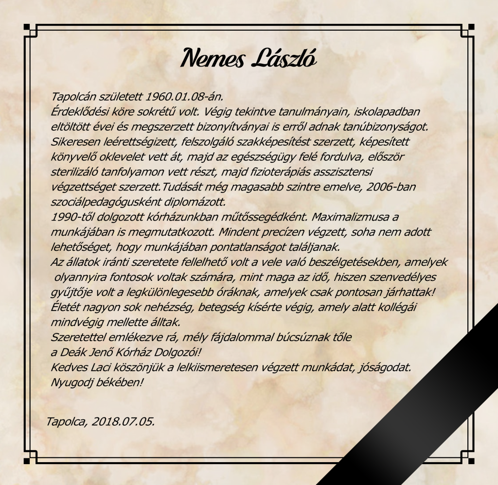 FELHÍVÁS! Elődeink példáját követve a tapolcai Dr. Deák Jenő Kórház és Rendelőintézet fejlesztésére és működtetésére támogatást, segítséget kérünk!részletek -