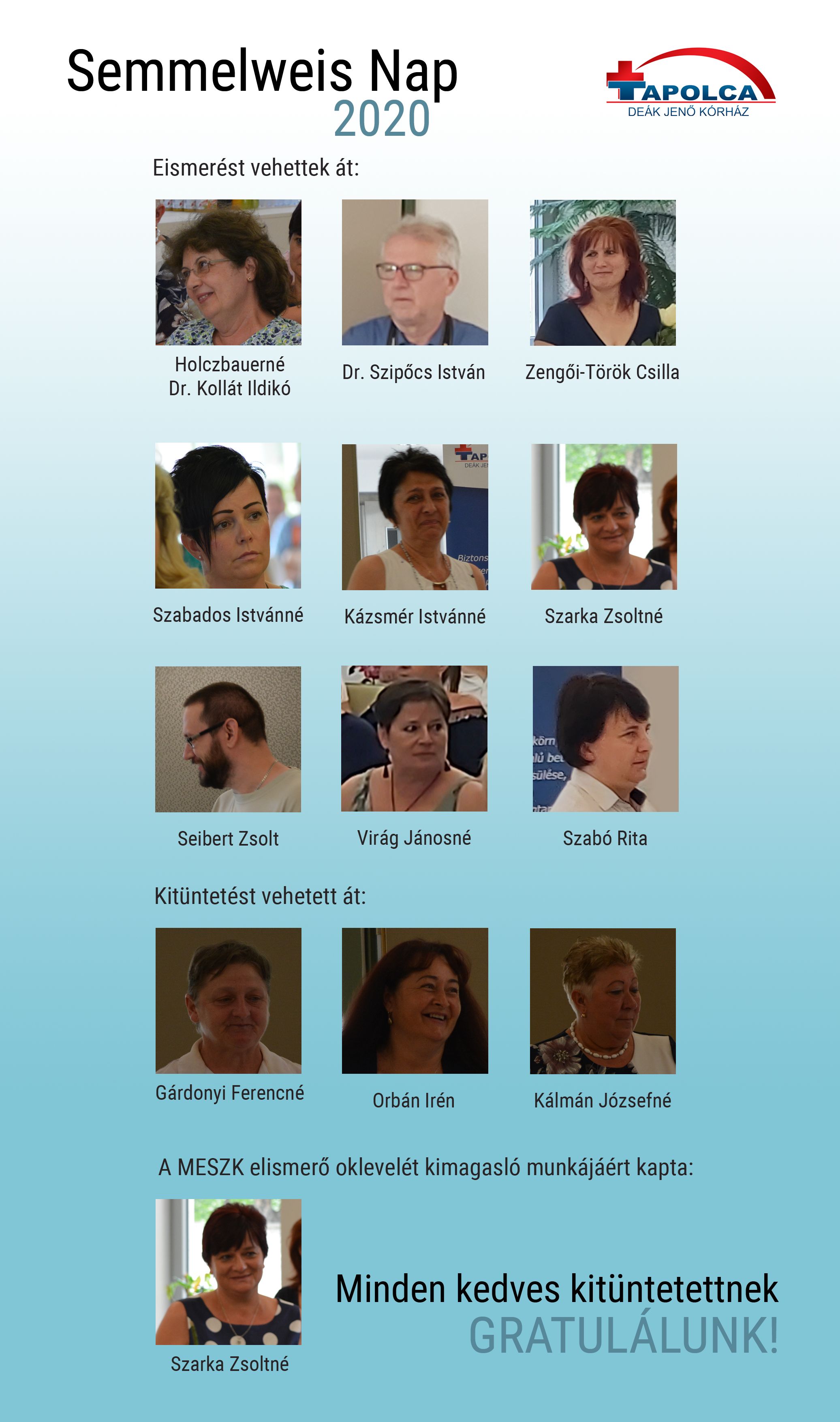 A 2016.09.08-10.-én Siófokon megtartott MESZK (Magyar Egészségügyi Szakdolgozói Kamara) III. Tudományos Szakdolgozói Kongresszusán kórházunk dolgozója, Zengői-Török Csilla, kimagasló munkája elismeréséül MESZK Szakmai Díjban részesült.